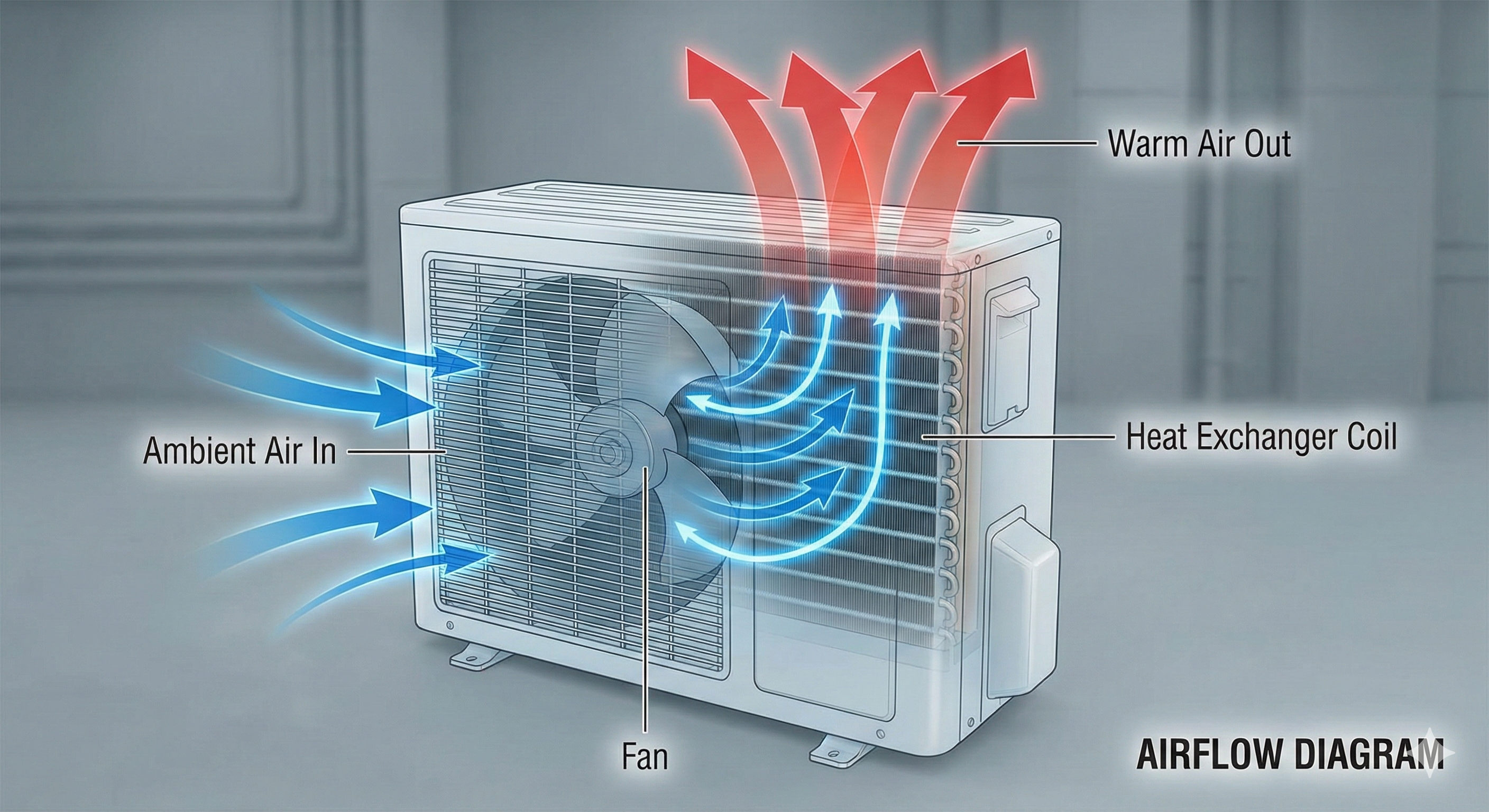 Për këtë arsye, qarkullimi i mirë dhe i lirë i ajrit rreth njësisë së jashtme është absolutisht esencial për funksionimin e drejtë dhe efikas të kondicionerit. Nëse ajri nuk mund të lëvizë lirisht nëpër fletët (lladnjakun) e shkëmbyesit të nxehtësisë, performanca bie ndjeshëm.